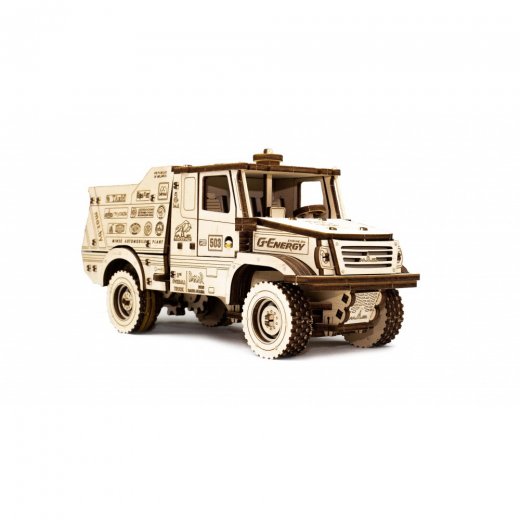 Модель предназначена для самостоятельной сборки. Экологически чистые материалы, качественная прорисовка элементов, эффектное сходство с оригиналом, наличие мощного резиномотора, который приводит в движение автомобиль, устройство заводки-запуска-остановки, поворотные колеса с механизмом управления и открывающиеся двери кабины доставят удовольствие от сборки и радость от использования как детям, так и взрослым. Отличный конструктор, замечательная игрушка, идеальный подарок и оригинальный предмет коллекционирования для дома и офиса!