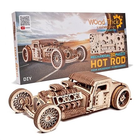 Деревянный конструктор "Хот Род" компании "Wood Trick", способен набирать максимально возможную скорость. Эта модель идеально подойдет как для подарка, так и семейного развлечения.
