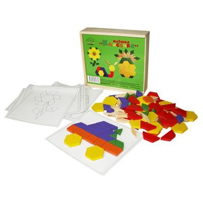 Необычная мозаика заинтересует и детей и взрослых. Всех вариантов сложений и не перечесть. В аккуратной деревянной коробочке находится около 120 ярких деревянных деталей. Все детали плоские, разных цветов, разных форм и размеров. В комплекте находятся образцы рисунков, которые малыш может "разукрасить" при помощи деталей.