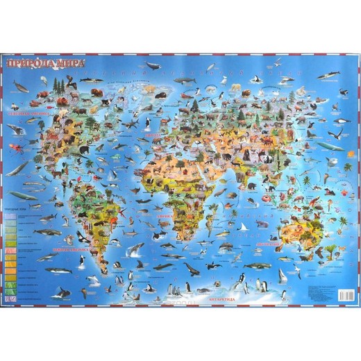 Предлагаем вашему вниманию красочную карту-плакат Природа мира. Дети могут рассматривать плакат самостоятельно. А плёночное покрытие позволяет рисовать на плакате фломастером и стирать за собой влажной губкой.
