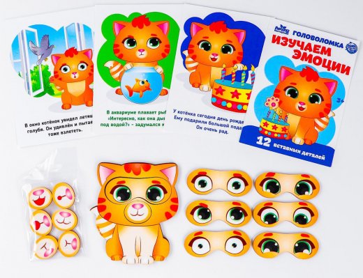 Купить игру "Изучаем эмоции с котенком" в Новосибирске Вы можете в магазине развивающих и настольных игр "Игры Почемучек".