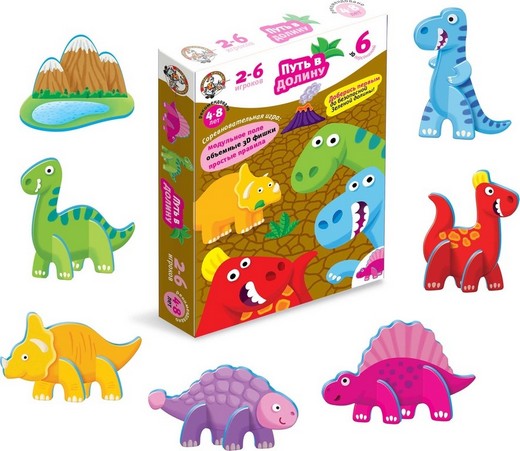Детям предстоит собрать фигурки динозавров, построить для них дорожку до Зеленой долины и провести по ней своих героев от старта до финиша. Но не все так просто. Игроки должны следить за тем, чтобы их динозавры не оказались запертыми в ловушке среди безжизненной пустыни, всегда были сыты, и у них хватило сил дойти до цели.