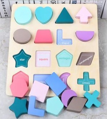 • Понимание разных типов геометрических фигур, цветов, названий.