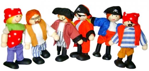 Набор фигурок Пираты – это замечательный подарок и развивающая игра для ребенка. Такая игра откроет целый мир кукольного театра для малыша. Деревянные фигурки "Пираты" станут отличным дополнением к кукольному домику, кораблю или замку. Фигурки идеально подойдут для сюжетно-ролевых игр как мальчикам так и девочкам. Каждый пират одет в индивидуальную яркую одежду что способствует развитию воображения вашего ребенка. Пираты высотой примерно 10 см и поэтому подойдут для домика любого размера. С помощью набора ребенок сможет разыграть множество игровых ситуаций по собственным выдуманным сценариям.
