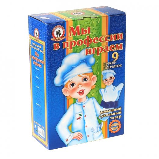 Кукольный театр "Мы в профессии играем" - набор с 9 куклами-перчатками. Среди них есть представители следующих профессий: повар, доктор, милиционер, пожарный, фермер, балерина, строитель, парикмахер и программист. Дети узнают, какую пользу люди этих профессий приносят людям, в чем состоит их работа и какими орудиями труда они пользуются. В этой коробке Вы найдете три веселых сценария разной степени сложности и продолжительности.