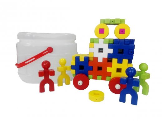 Состав набора: человечек-4шт, полурешетка-12шт, решетка-4шт, крест-4шт, платформа-1шт, ось-2шт, колесо-4шт, фара-5шт.
