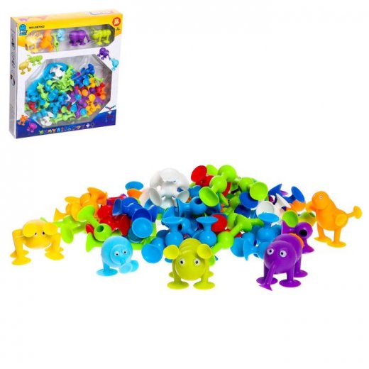 Конструктор состоит из большого количества разноцветных элементов с присосками. Из этих деталей ребенок сможет соорудить все, что душе угодно. Это могут быть человечки, животные, растения, предметы. Благодаря присоскам части конструктора соединяются между собой, а также крепятся к любым поверхностям, что позволяет дать детям больше возможностей для творчества.