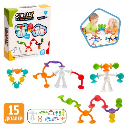 Удивительный конструктор, не похожий на все остальные, заворожит малыша. Приятные на ощупь детали, многообразие форм, возможность прикрепления деталей к различным поверхностям - все это свойства конструктора Sibelly. Конструктор состоит из 15 деталей разноцветных элементов с присосками. Из этих деталей ребенок сможет соорудить все, что душе угодно. Благодаря присоскам части конструктора соединяются между собой, а также крепятся к любым поверхностям, что позволяет дать детям больше возможностей для творчества. Рассоединение присосок - не менее увлекательный процесс, сопровождающийся звуком памп-памп! Родители могут не переживать за безопасность своего малыша. Ведь все детали выполнены из высококачественного силикона. Он не имеет запаха и не вызывает аллергии. При необходимости конструктор можно мыть в мыльном растворе.