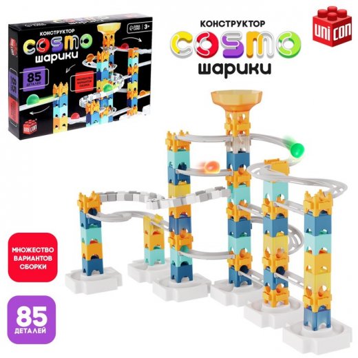Конструктор марблс «COSMO-шарики» — мир безграничных возможностей. Ребёнок будет создавать уникальные трассы для спуска шариков, придумывая каждый раз новые сооружения.