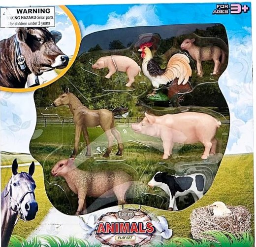 Набор фигурок Ферма – познакомит ребенка с животными, обитающими на ферме. Животные фермы – это домашние животные, содержащиеся человеком для получения продуктов питания (мясо, молоко, жир, яйца), сырья производства (шерсть, щетина, кожа, кости, пух, перья), а также выполняющие транспортные и рабочие функции. Малышу будет интересно узнать, какую пользу получает человек от того или иного животного. Реалистичные фигурки коровки, лошадки, овечки, курочки сделают игру в ферму по-настоящему увлекательной и позволят смоделировать много ситуаций, происходящие на ферме.