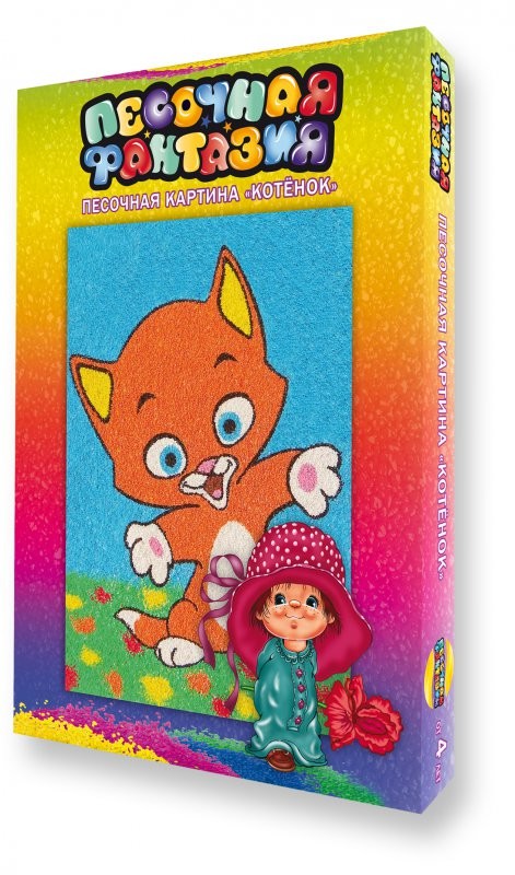 Песочная картина "Котенок" - это занимательная раскраска цветным песком для детей.