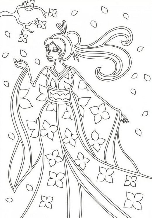 - Трафарет Девушка в кимоно