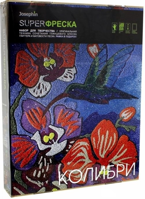 Набор для творчества "Колибри" из серии "Супер фреска" непременно порадует вашего ребенка. Он включает в себя все самое необходимое для создания изумительной картины из песка, которую впоследствии с гордостью можно будет представить гостям. Принцип изготовления шедевра искусства очень прост, в нем разберется самостоятельно даже маленький ребенок. А подробная инструкция по изготовлению поможет ему в этом. Во время такой интересной и увлекательной работы малыш будет развивать координацию, мелкую моторику рук и творческое мышление, а также такой кропотливый вид творчества приучает ребенка к труду.