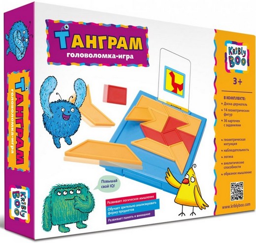 В процессе игры у детей развивается умение анализировать простые изображения, выделять в них, а также и в окружающих предметах геометрические формы, практически видоизменять фигуры путем разделения их на составные части, составляя из этих частей новые. Головоломка Kribly Boo способствует развитию внимания, усидчивости, комбинаторных способностей, а также создает ребенку хорошее настроение, ведь так здорово, когда из набора фигур вдруг получился зайчик, или рыбка или человечек!