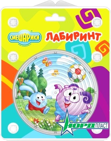 Двухсторонний лабиринт Смешарики - это логическая игра с известными героями мультика "Смешарики" от компании "Нордпласт", она  непременно понравится вашему ребенку и поможет довольно интересно и занимательно скоротать время в поездке, или при ожидании чего-нибудь. Играть в лабиринт очень просто, нужно наклонять коробочку круглой формы, так чтобы провести шарик в центр двустороннего лабиринта,  который украшает цветное изображение Кроша, Бараша, Нюши и Ежика, которые весело играют в спортивные игры на свежем воздухе.