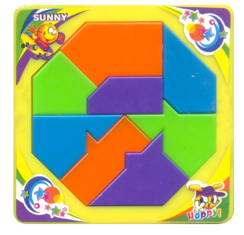Танграм - знаменитая китайская головоломка. Она состоит из семи плоских фигур, которые комбинируются и из них получаются более сложные контуры: человечек, птичка, и т.п. Отличный и увлекательный способ занять досуг малыша. В комплекте идет инструкция по сборке фигур.
