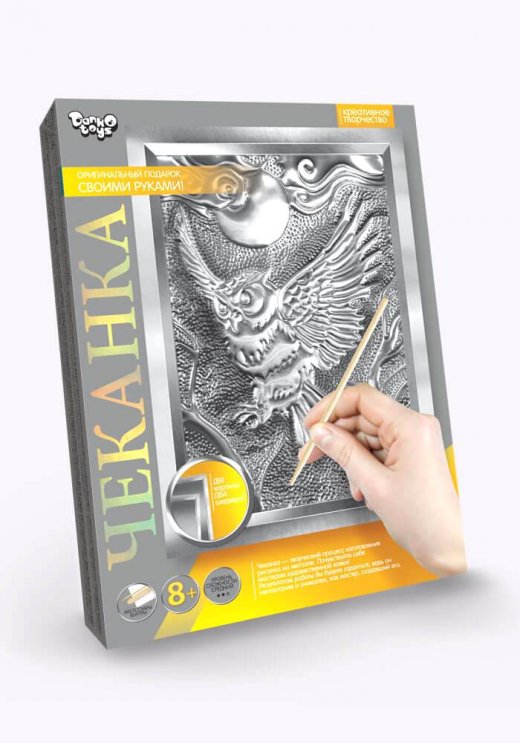 Чеканка требует усидчивости, внимания и терпения, ведь это кропотливый труд. Набор содержит все необходимое для создания оригинального панно. Он поможет развить мелкую моторику, внимание к мелочам, аккуратность и подарит множество приятных минут.