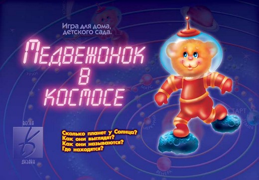 "Медвежонок в космосе" это увлекательная настольная игра-ходилка, которая не оставит равнодушным ни одного любителя приключений и космических тем. Игра отлично сможет познакомить ребенка с космическими объектами, их формами, размерами, он узнает некоторые космические термины, сможет побывать рядом с ними в своем воображении. Игра очень интересная и познавательная. Она развивает абстрактное мышление, фантазию, терпение, аккуратность, любознательность, эрудицию, внимательность, сообразительность, целеустремленность, усидчивость, воображение, эмоциональную и коммуникативную сферы, интеллект, мотивацию, память, умение действовать в рамках установленных правил, умение элементарно считать. Играйте и развивайтесь с чудесной настольной игрой "Медвежонок в космосе"!