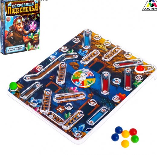 В тайном подземелье спрятан клад семи гномов. Каждый из игроков мечтает о нём, но лабиринты очень запутаны. Ставьте свой шарик на старт и крутите рулетку – она покажет, на сколько ходов вам нужно идти вперёд. Но будьте осторожны – путь опасен. Вы можете легко скатиться по горкам обратно вниз или забраться по лесенкам наверх. Кто доберётся до клада первым?
