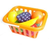 Комплект: корзина, фрукты и овощи (виноград,лимон, апельсин, банан, груша, яблоко, огурец, перец, морковь, свекла, кукуруза, картофель, баклажан, помидор, лук)