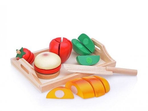 Комплектация: 18 деталей на липучках, поднос и деревянный нож.