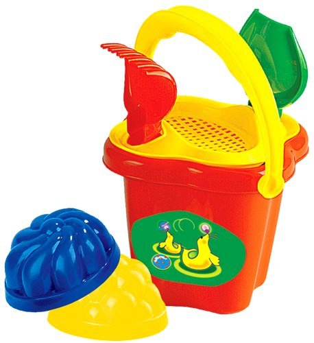 Состав набора: ведро, ситечко, совок, две формочки, грабельки.