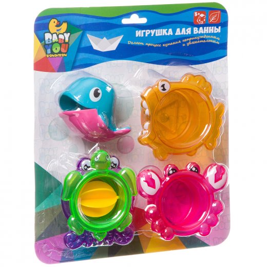 Набор для купания "Стаканчики с лейкой китом" содержит 4 стаканчика в виде морских обитателей и лейка в виде кита. На дне каждого стакана есть отверстия, через которые можно выливать воду, как через сито. Лейкой можно наливать воду. Игрушка отлично подойдет как для игры в ванной, так и для песочницы. Можно строить разнообразные домики и пирамидки, вставлять стаканчики друг в друга.