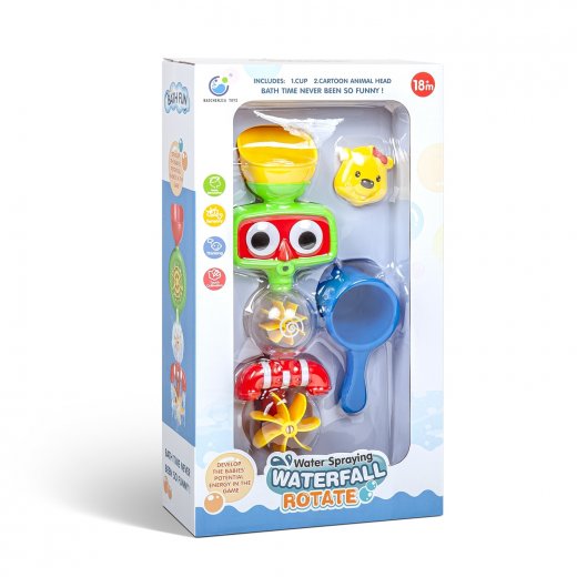 Набор для купания "Глазастик" сделает купание малыша весёлым и интересным! Специальная присоска позволяет закрепить игрушку на кафеле или на стенке ванной. В устройство наливается водопроводная вода и она запускает механизм мельницы, делая купание весёлым и интересным.