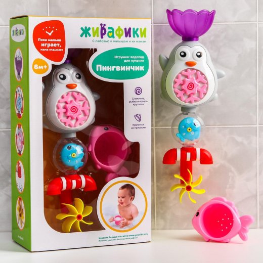 Игрушка-водопад «Пингвинчик» превратит ежедневное купание малыша в увлекательный аттракцион, полный весёлых брызг и ярких эмоций!