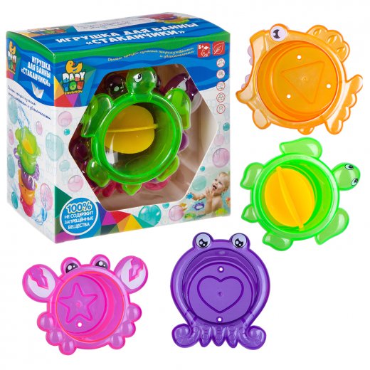 В наборе 4 стаканчика в виде морских обитателей. На дне каждого есть отверстия, через которые можно выливать воду, как через сито. Игрушка отлично подойдет как для игры в ванной, так и для песочницы. Можно строить разнообразные домики и пирамидки, вставлять стаканчики друг в друга. Набор поможет развить мелкую моторику и координацию движений, научит различать цвета, распознавать форму и определять размер предметов. Благодаря компактности игрушку удобно брать с собой.