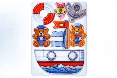 1. Рассмотрите с ребенком игру. Попросите найти и показать мишку, котика, рыбку, спасательный круг, якорь.