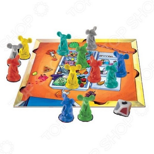 Игрокам надо бросать кубик с цветными сторонами и картинками и действовать! Выпал цвет – скорее хватай мышь такого же цвета. Можно и у другого игрока забрать. Выпал сыр – скорее бери любого мышонка с поля. Выпала кошка – начинается самое интересное – мыши всех игроков убегают к соседу! И клетка – игрок возвращает одну мышь обратно на поле. Динамика, удобные фишки, необычный кубик, простота освоения порадуют детей и их родителей.