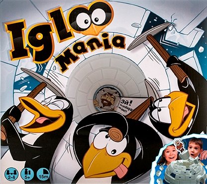 Настольная игра "Иглу Мания" (Igloo Mania) от компании Ooba - это невероятно веселая и очень необычная вариация ставшей уже классической игры в падающую башню! Эскимос Эдди после долгой работы наконец-то построил иглу. Он установил последний блок на верхушке своего жилища. Но пингвины-воришки не спят и вытаскивают кирпичи, пока человек находится на крыше дома. Выступите в роли птицы в настольной игре «Иглу мания», доставайте кубики, не давая Эдди упасть.