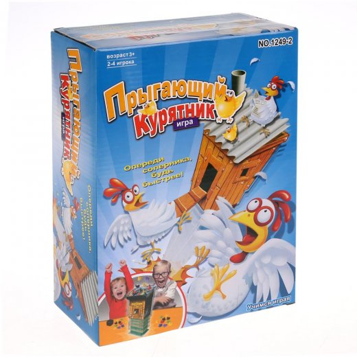 Настольная игра "Прыгающий курятник" состоит из симпатичных ярких фигурок куриц и самого настоящего игрушечного курятника! Игрокам нужно ото всех своих куриц, пока они не разбежались. А разбежаться они могут в любой момент, так как курятник имеет свойство подскакивать, выпуская несушек на свободу!