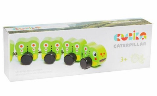 Поезд деревянный "Гусеница Cubika" - деревянная игрушка для детей от 18 мес., состоящая из 5-ти элементов, которые крепятся между собой на магнитах.