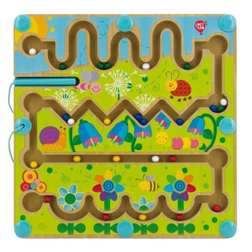 Невероятно красивый магнитный лабиринт из дерева умеет притягивать и в прямом, и в переносном смысле! Оторваться от такого развлечения тяжело даже взрослым. Суть в следующем: в большой квадратной доске вырезаны маршруты, по которым должны двигаться маленькие металлические шарики. Цель - при помощи палочки довести их от старта до финиша. Игра активно тренирует координацию движений. Особого внимания заслуживает дизайн деревянного магнитного лабиринта - он похож на лесную полянку, где растут цветы, ползают гусеницы, летают пчелы. Высококачественные экологичные материалы и ручная обработка дерева делают игру безопасной даже для ребенка 3-5 лет.
