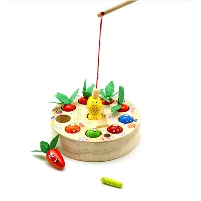 Хватай-ка и рыбалка в одном! Игра представляет из себя рыбалку и объёмный вкладыш в виде грядки с морковью, ведь детки так любят стилизованные игрушки!