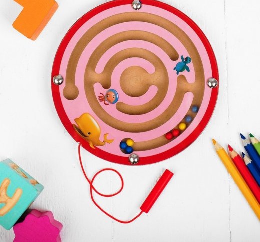 Порадуйте ребёнка захватывающей логической игрушкой! Суть магнитного лабиринта в том, чтобы довести каждый шарик в конечную точку маршрута с помощью специальной ручки на шнурке.