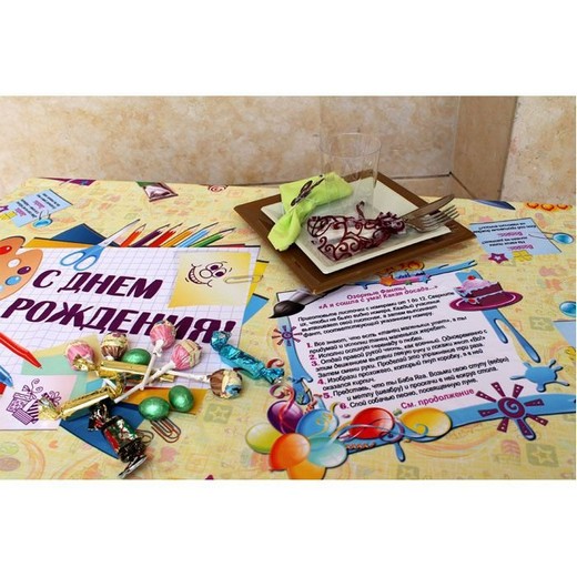 Ведь это так здорово, когда на праздничном столе постелена скатерть, на которой можно рисовать, проходить по лабиринту, отгадывать загадки, выполнять озорные фанты!