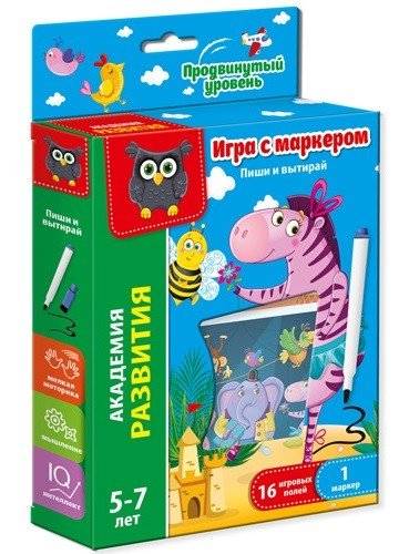 Игра с маркером для развития мелкой моторики, внимания и логики. Благодаря маркеру с губкой "пиши-стирай", карточки можно использовать неограниченное количество раз.