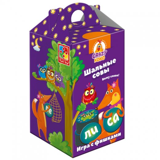 Купить настольную игру "Шальные совы Сложи слово" в Новосибирске Вы можете в магазине развивающих и настольных игр "Игры Почемучек".