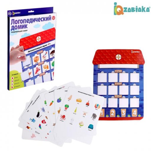 Внутри набора ребёнок найдёт домик с 12 окошечками, карточки и разные варианты логопедических заданий.