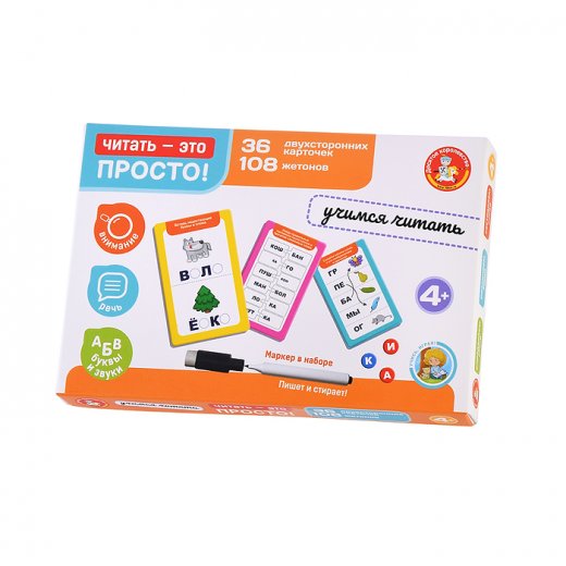 Развивающая игра для детей «Читать - это просто! Учимся читать» - это набор карточек с заданиями для тренировки навыков чтения.