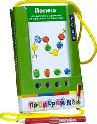 Игра с карандашом Проверяйка Логика - это замечательный набор для игр и развития ребенка, который несомненно ему понравится. Комплект состоит из 48 двухсторонних карточек и рассчитан на две разных игры с цветной и чёрно-белой сторонами. Задания ориентированы на развитие образного и логического мышления, воображения. Условия игры с карточками подразумевают их многократное использование. Простота и удобство комплекта позволяют организовать игру в школе и дома, а также в транспорте или на природе. Благодаря игровой форме пособия учебный материал усваивается легче и без принуждения, реализуется безопасное для здоровья ребёнка обучение. А играть совсем просто: Прочитайте задание на карточке; Подберите подходящий вариант ответа; Затем вставьте карандаш в отверстие, соответствующее выбранному ответу, и потяните карточку; Если решение верное, карточка вытянется из блока; В противном случае карточка останется в блоке; Карточку с решённым заданием каждый раз размещайте в конце блока. После того как все 48 заданий на цветной стороне будут выполнены, рекомендуется перейти к заданиям на чёрно-белой стороне карточек.