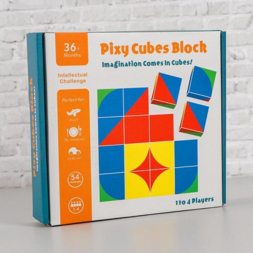 Грани кубиков окрашены по-разному в 4 цвета, что позволяет составлять из них как самые простые одноцветные, так и разнообразные сложные узоры.