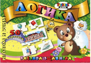 Развивающая игра Логика – это весьма интересное и увлекательное занятие для ребенка. Игра служит детям дошкольного и младшего школьного возраста в познании окружающего мира и предметов окружающих нас в повседневной жизни. В состав развивающей игры входят 50 карточек из плотного картона. На них изображены всевозможные предметы, которые связаны между собой по смыслу. Картинки красочные и наглядные. Цель игры состоит в том, чтобы подобрать к карточке большего размера с общим признаком четыре маленьких с подходящими рисунками, например школа – портфель, глобус, тетрадь и т.д.. Эта игра научит ребенка выстраивать логические цепочки, а так же называть предметы обобщающим словом: здания, мебель, бытовой прибор ит.д. Вариантов игр с этими карточками можно придумать сколько угодно, в общем строгих правил и ограничений по количеству игроков здесь нет, правила устанавливаете и усложняете по надобности вы сами.