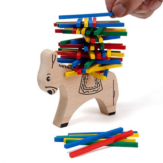 Сложить свои палочки на спину ослика не уронив конструкцию из уже положенных палочек.