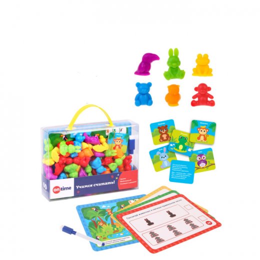 Купить Развивающую игру On time Учимся считать Животные 60 шт в Новосибирске Вы можете в магазине развивающих и настольных игр "Игры Почемучек".