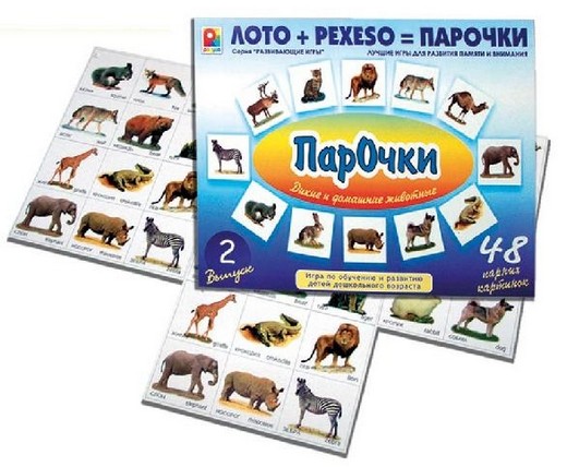 - Настольная игра Парочки №2 Дикие и домашние животные