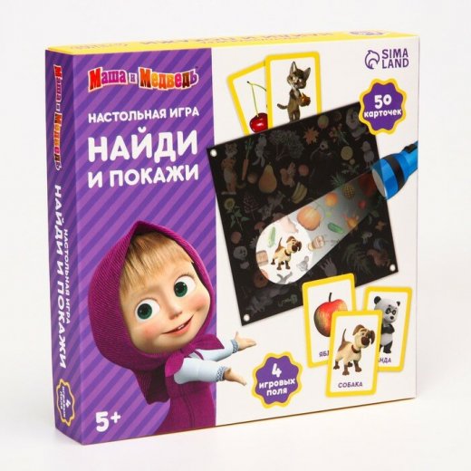 Купить настольную игру "Найди и покажи Маша и Медведь" в Новосибирске Вы можете в магазине развивающих и настольных игр "Игры Почемучек".